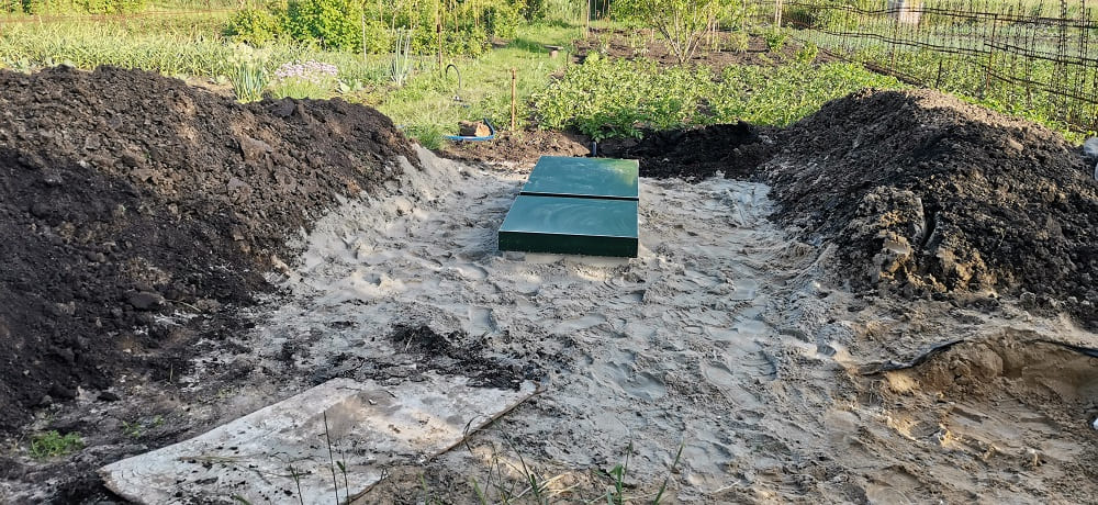 - Высота септика для высоких грунтовых вод должна быть не очень большой, так как при рытье глубокой ямы, она будет постоянно заполнена водой.