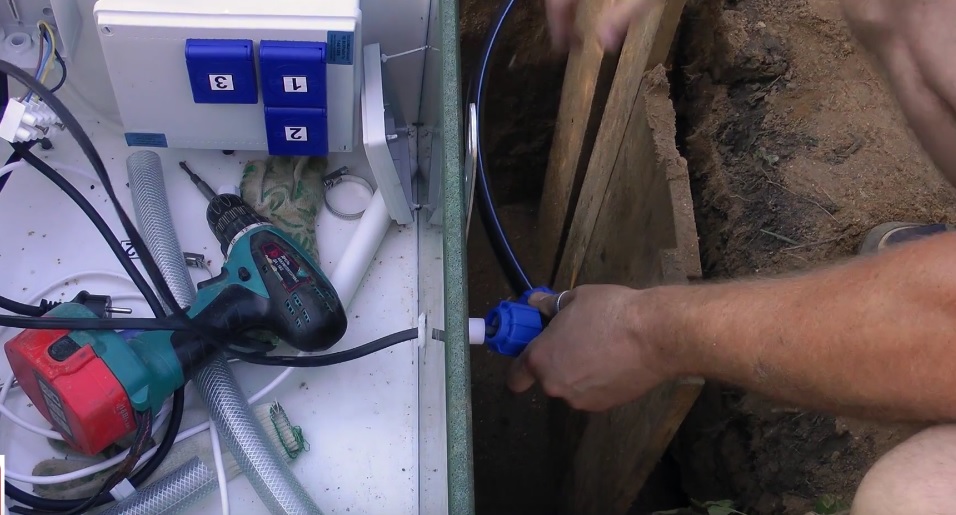 - Подвести кабель и канализационную трубу к котловану на нужной глубине.