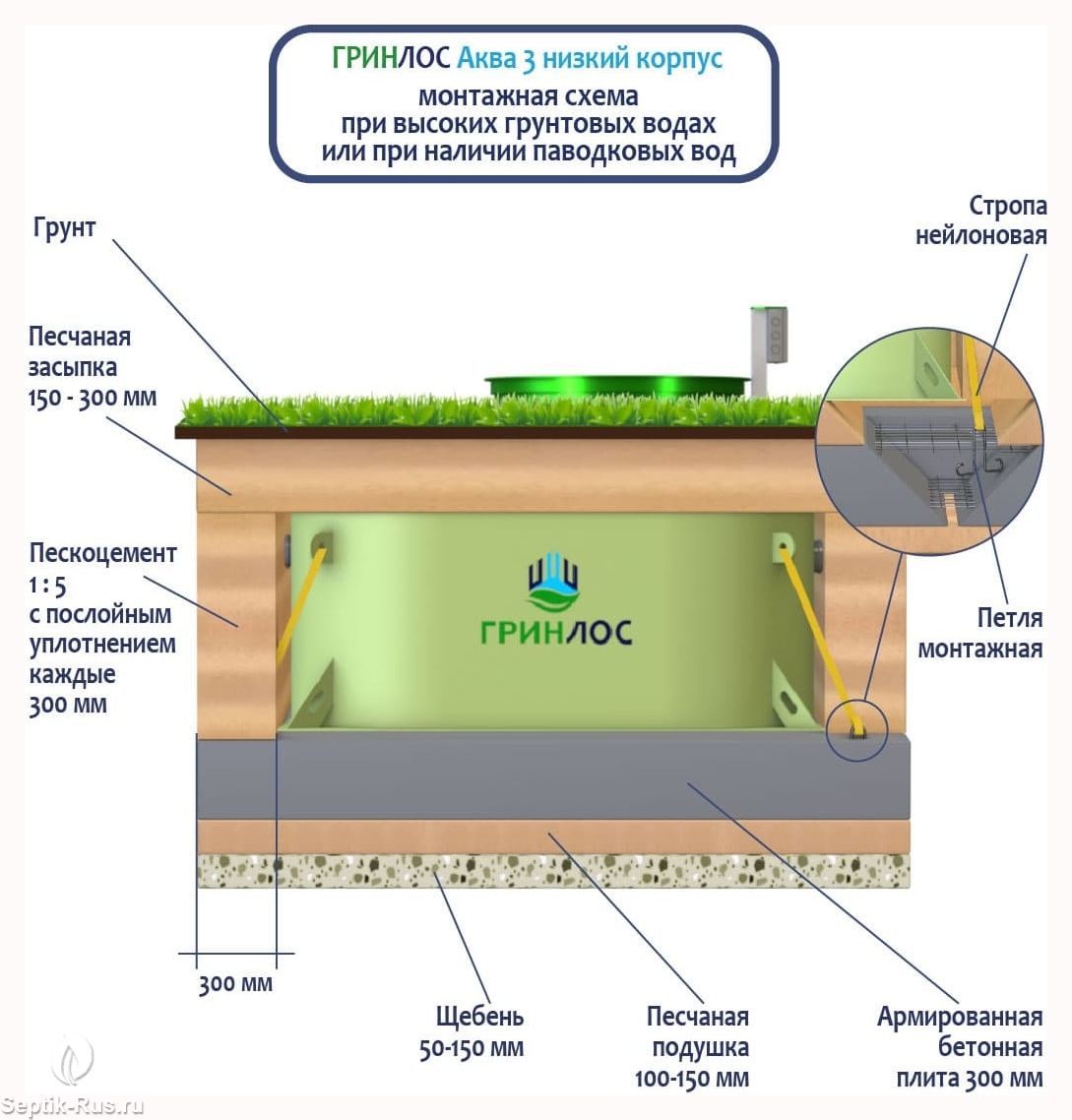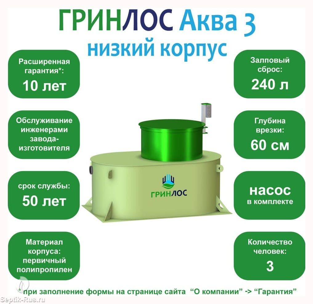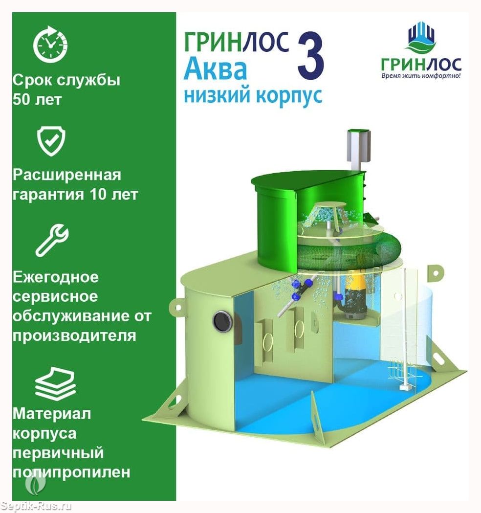 Доставим и установим септик ГРИНЛОС Аква 3 низкий корпус за 1 день по цене ниже конкурентов и скидкой на монтаж до 29%. Звоните!