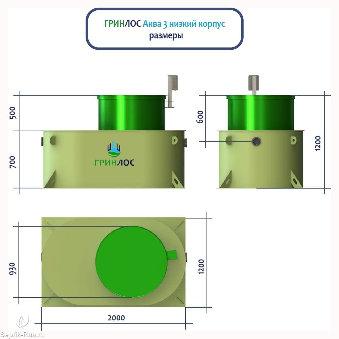 Отличительными особенностями септика ГРИНЛОС Аква 3 низкий корпус являются: